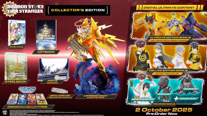 With the launch of Digimon Story Time Stranger drawing near on 2 October 2025 for PlayStation®5 and Xbox Series X|S, and 3 October 2025 for PC via Steam®, we would like to release information on the game's Collector's Edition.